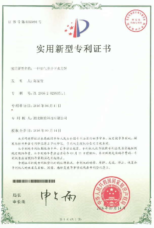 湖北歐倫科技有限公司是在北京歐倫石油技術開發有限公司和青海歐倫油氣設備有限公司基礎上組建而成的企業。專門進行各類井下工具設計,制造,生產,銷售及其服務。新公司成立于2012年底,注冊資金1000萬元。